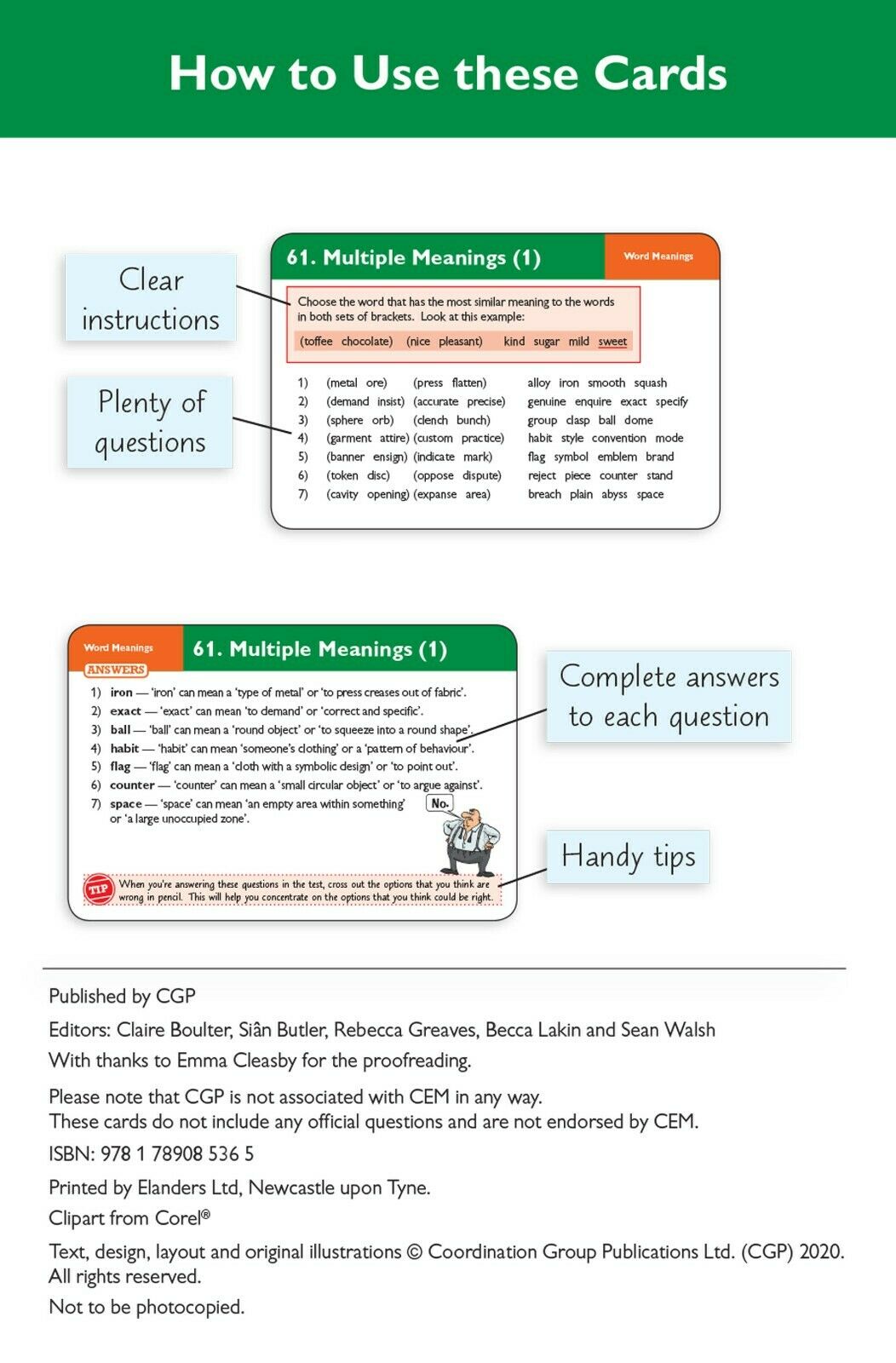 11 Plus Year 6 CEM Revision Question Cards Verbal Reasoning Vocabulary CGP